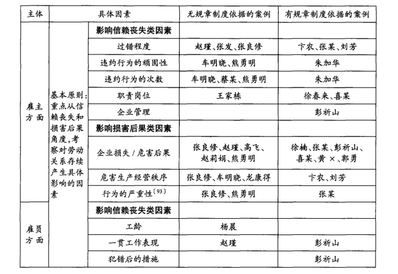 需强调的是,正如案例分析表明,严重程度通常并非决定于某一因素,而是在综合衡量个案中所有对员工有利或不利因素的基础上认定的。是故,所斟酌的因素具有开放性,不仅限于以上的典型要素,不同个案中须考虑的具体因素会有所差异,即便是同一因素亦会有不同的评价。