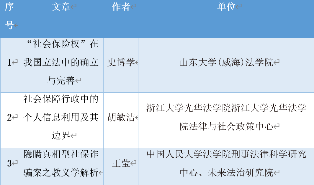 社会保险作为劳动者、用人单位与政府“三方联动”的制度,为使公民共享发展成果,促进社会和谐稳定发挥重要作用。2019年CLSCI期刊共收录3篇社会保险法相关文章,涉及“社会保险权”的立法规制、社会保障行政中的个人信息保护以及社保诈骗的法教义学分析等内容,具体内容如下: