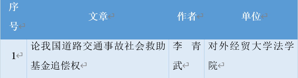 2019年CLSCI期刊共收录1篇社会救助法相关文章,主要内容为道路交通事故社会救助基金追偿权的立法完善,其具体内容如下: