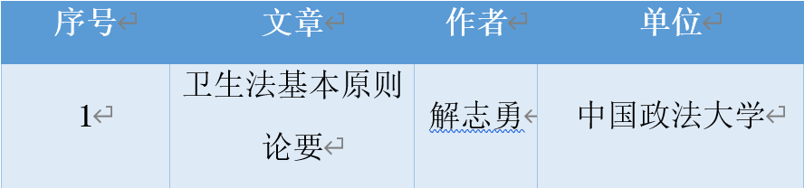 《基本医疗卫生与健康促进法》于2019年12月28日经十三届全国人大常委会第十五次会议表决通过,其立法宗旨是为了发展医疗卫生与健康事业,保障公民享有基本医疗卫生服务,提高公民健康水平,推进健康中国建设,这也是我国卫生健康领域内的第一部基础性、综合性的法律。2019年CLSCI期刊收录1篇医疗卫生法相关文章,对卫生法基本原则展开研究,具体内容如下:
