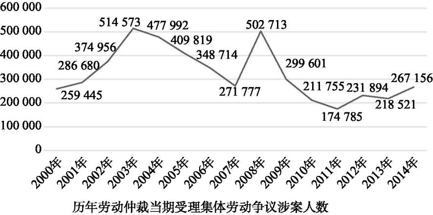私力救济和公力救济是权利救济的两种基本形态,我国群体劳动争议、集体劳动争议很大程度上对应了这样两个概念。集体劳动争议作为一种法律上的分类,是可纳入正规处理程序的争议类型,通过国家强制力予以保障,采用公力救济的手段。群体劳动争议也被称为“群体性事件”,是在正常的劳动争议处理程序之外发生的争议,除了具有群体性的特点,更具有非秩序的特点,主要采用私力救济手段。2015年前,我国劳动争议一直呈现着群体劳动争议、集体劳动争议逆向发展的“二元”局面。