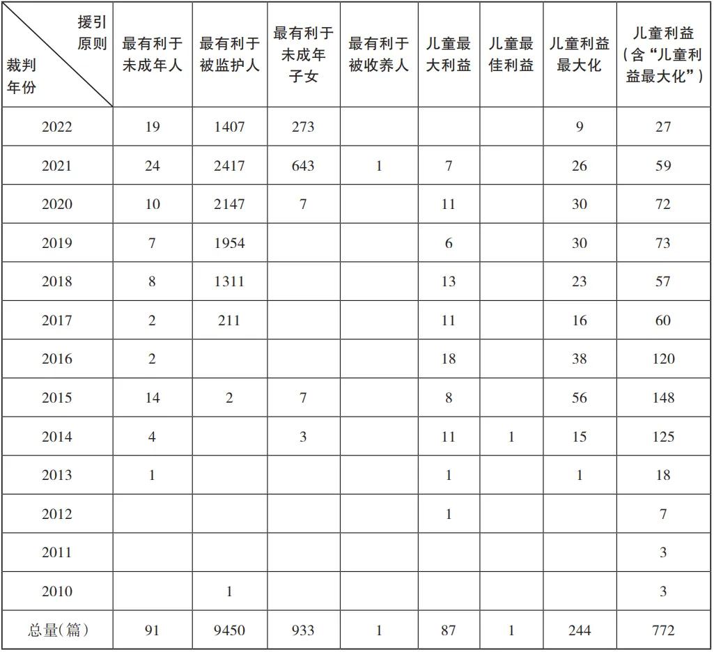 表2 “最有利于……”系列原则援引数据(2010年至2022年)