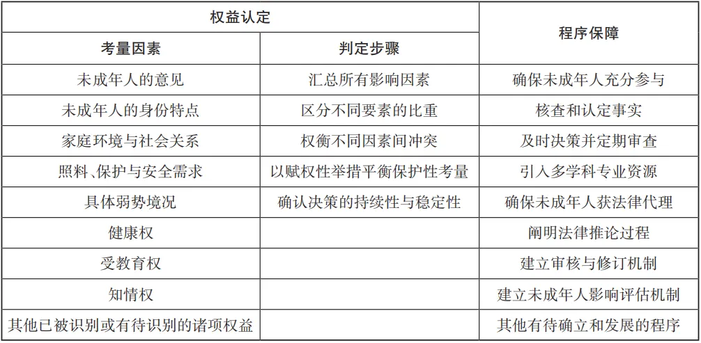 表4 最有利于未成年人原则适用中的权益认定与程序保障