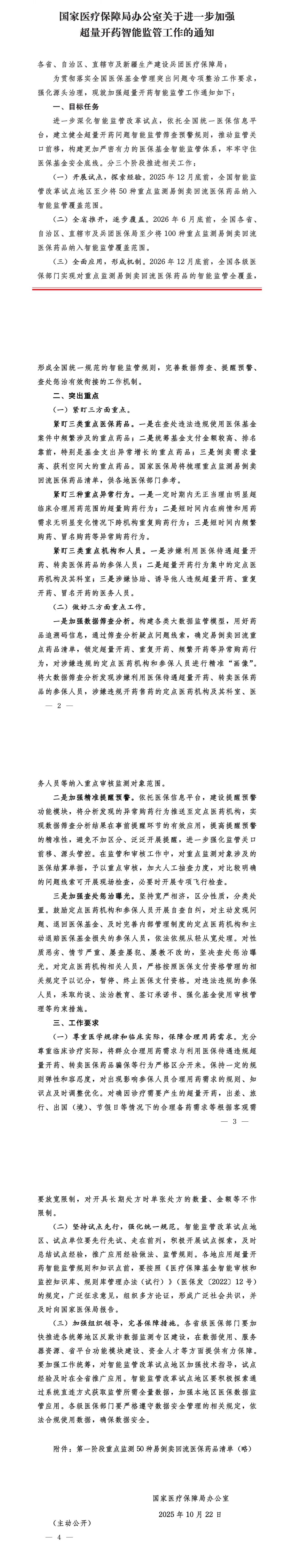 新闻|国家医疗保障局办公室关于进一步加强超量开药智能监管工作的通知