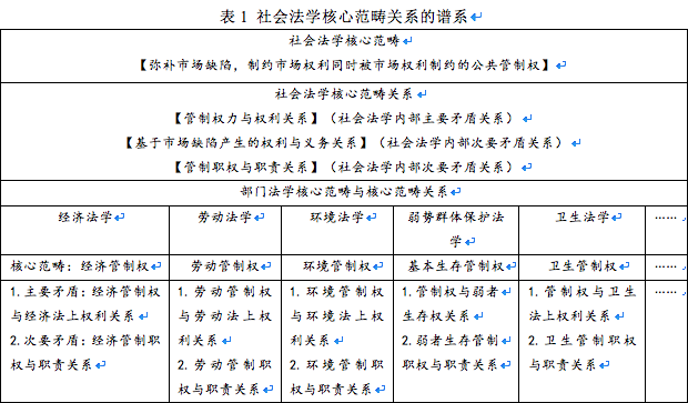 在以上相关成果中,我们看到法学核心范畴争议在社会法学研究中的延伸和投射。特别是在社会法域内权利和权力的关系问题上,我们看到了熟悉的法理学界的挣扎。所有的学者都拒绝权力范畴在社会法领域内的一元核心地位,只有在与权利并列的法权结构中,权力才能进入核心范畴层。笔者认为,社会法以社会整体利益为本位,其核心范畴应当在权力层面。这种观点很可能难以被学界所接受。然而,我们一定不能忘记,所谓现代国家干预,是指国家行使其现代的经济和社会新职能,而传统公法、私法二元法律结构适配的是国家政治职能。同为执行国家职能的权力,如果说公法的核心范畴是消极保护私权的国家权力,那么将积极保护私权、维护社会利益的公共管制权力视为社会法的核心范畴,契合大陆法系的形式理性,更是我国管制性法律具有实效性的诉求。