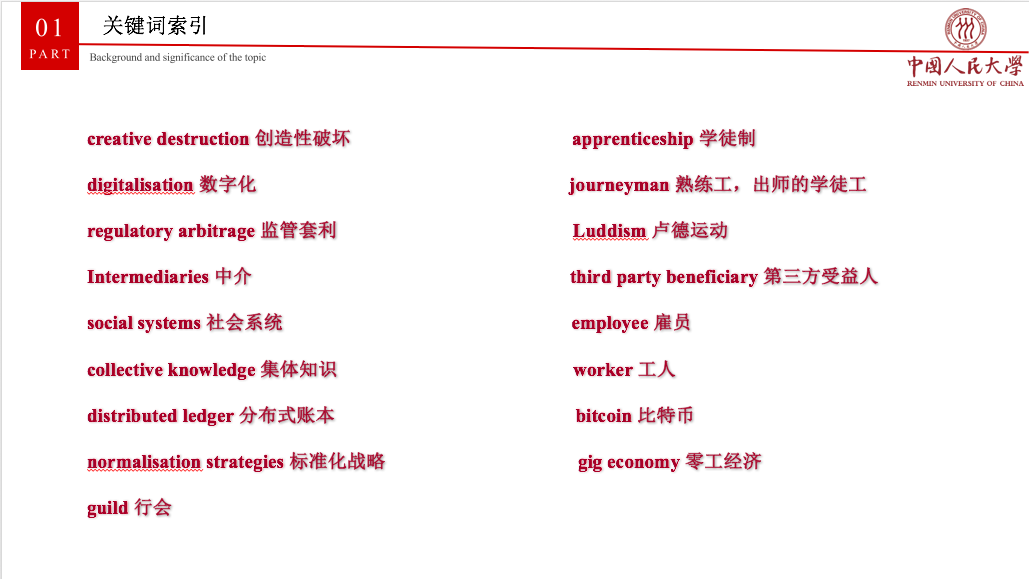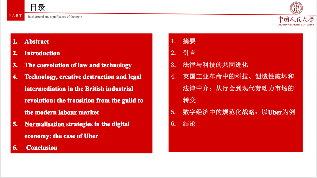 各位老师、师兄师姐、同学们大家晚上好!今天非常荣幸在社会法读书会上做报告。我报告的题目是The Law-Technology Cycle and the Future of Work,我的翻译是“法律—科技圈与未来的工作”。这篇文章发表于2018年5月,作者是剑桥大学法学院的Simon Deakin教授和Christopher Markou讲师。