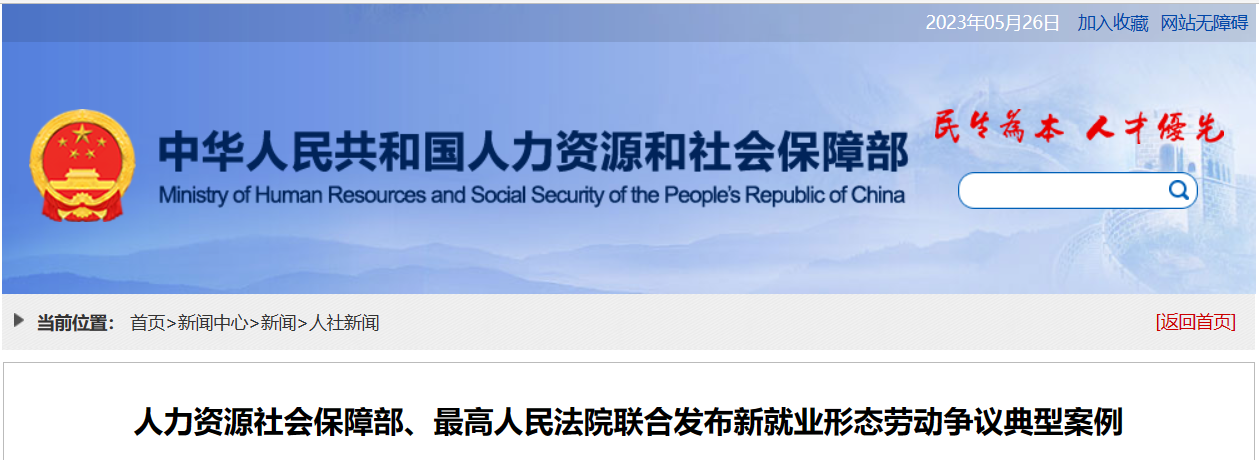 近日,为深入学习宣传贯彻党的二十大关于支持和规范发展新就业形态、加强灵活就业和新就业形态劳动者权益保障的重要部署,人力资源社会保障部、最高人民法院联合发布了新就业形态劳动争议典型案例,通过以案释法引导裁判实践,对于切实提高新就业形态劳动争议案件办理质效,充分实现平台经济良性发展与劳动者权益保护互促共进具有重要意义。