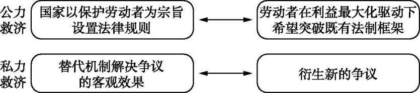 私力救济、公力救济作为我国权利救济的两种基本形态,群体劳动争议、集体劳动争议的逆向发展,呈现出两种救济形式的错位。