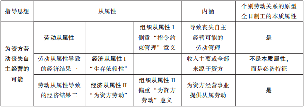 表1 劳动关系从属性的内涵与关联