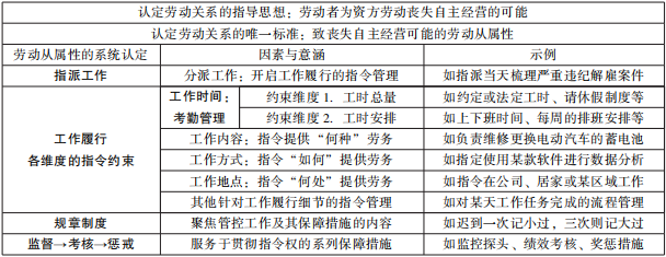 (二)“综合衡量管理因素模式”的要义:使劳动者丧失自主经营可能的指令