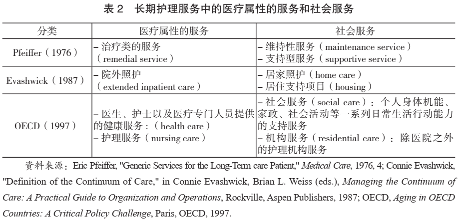 关键词:长期护理;医疗卫生服务;长期护理保险;制度边界
