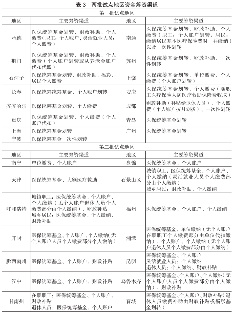 医保基金是长期护理保险筹资的重要渠道,在第一批试点城市中,试点地区的长护险筹资无论是常规化的医疗保险统筹基金划转,还是作为启动资金的一次性划转,或是个人账户代扣代缴,均来自于医保基金。整体来看,医保基金在各个试点城市中承担了20%—100%不等的筹资比例。而在第二批试点城市中,长护险筹资从直接的医保基金划转,普遍转换为“从其缴纳的职工基本医疗保险费中划出”,除了上饶和南宁市是单位单独缴费外,其他试点城市的单位缴费实则是从单位缴纳的医保统筹基金中“平移划出”到长护险筹资中,具体如表3。可视为长护险独立筹资的过渡性规定,与第一次相比有较大进步。