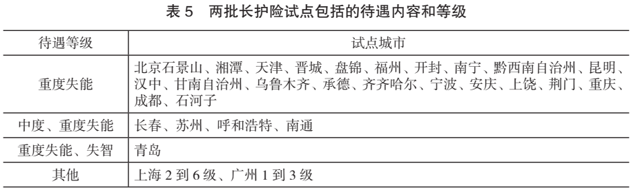 综合试点地区的实践情况来看,试点地区普遍将重度失能纳入到保障人群中,长春、苏州、呼和浩特、南通将重度、中度失能,青岛将重度失能、失智群体纳入到保障范围。早期试点的过程中,针对术后患者的医疗护理与长期护理需求并没有做明确的区分,同时出现在保障人群范围内。这主要是由于,地方开始自主长护险试点时,一方面,针对术后患者的带有康复属性的医疗护理保障尚不完备,试点地区对于长期护理与医疗护理没有做明确的区分,个别地区采用了“长期医疗护理保险”的名称进行试点,主要保障群体是术后具有康复和护理需求的患者。另一方面,由于康复中心、社区等承载康复护理的机构不足,具有康复需求、长期护理需求人群入住在医疗机构,超长住院天日导致了医疗资源使用的低效与浪费,这也成为部分地区长护险试点的动因。